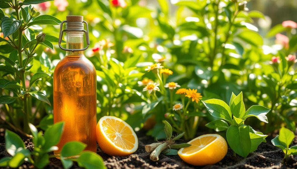 This mix can keep insects away and feed your plants. Adding orange oil to compost tea and molasses makes a strong pest control. It helps your garden grow healthy and keeps chemicals away.